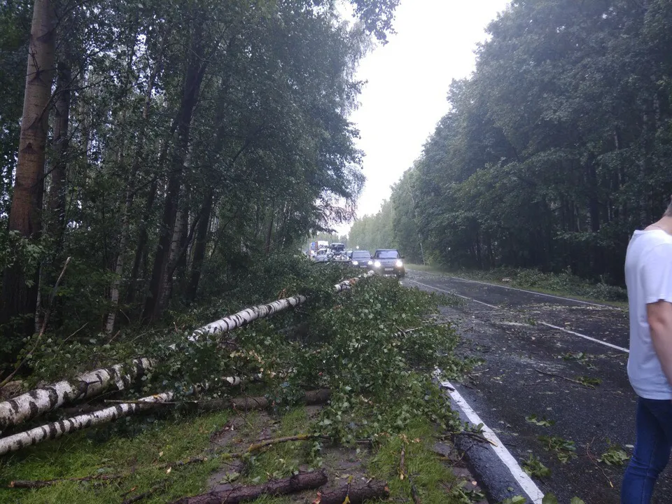 Резкие порывы ветра и сильнейший ливень, которые прошли по Рязанской области и самой Рязани 17 июля устроили серьезную непряитность тем, кто в это время ехал по трассе Касимов-Рязань. Как сообщают очевидцы в группе ВК "Типичный Касимов" из-за поваленных деревьев возникла внушительная пробка, так как дорога оказалась полностью перекрытой поваленными деревьями.