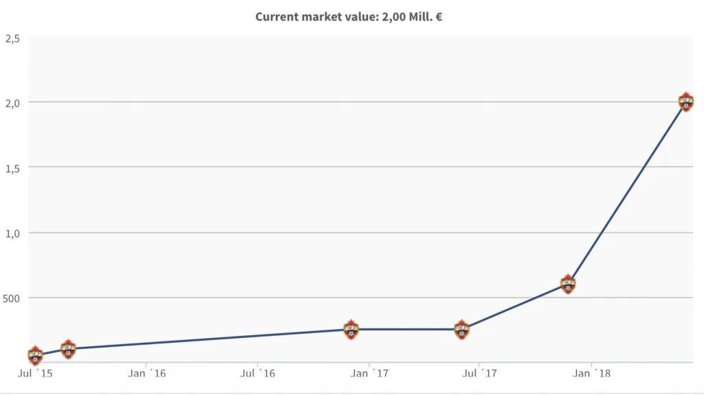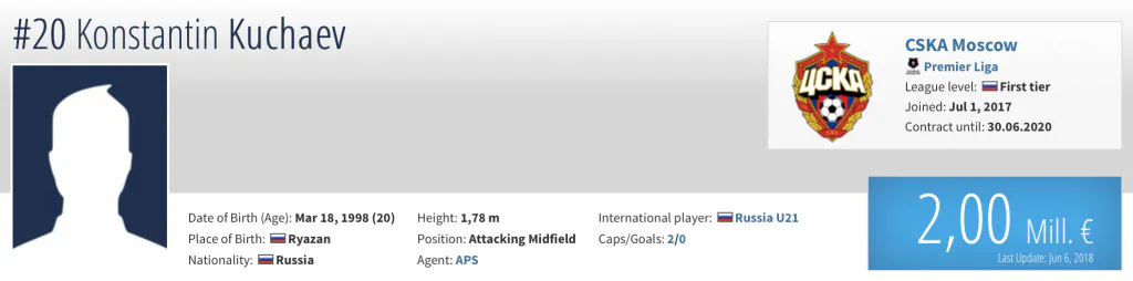 На данный момент рязанца оценивают в 2 миллиона евро. Эту цифру подтверждает и авторитетное издание Transfermarkt.