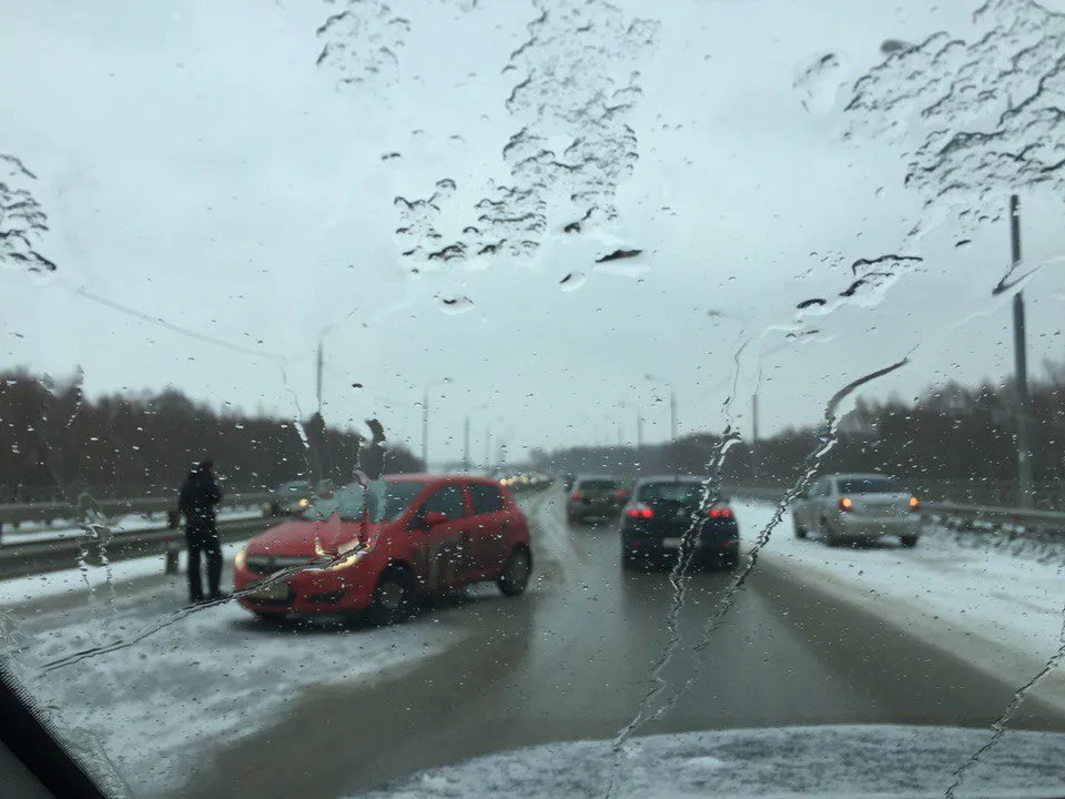 В 250 метрах от аварии стоит еще одно битое авто. Судя по фотографиям, возможно, это было столкновение с большегрузом.  Визуально на объездной дороге голый лед, на въезде в город  водители стоят в пробке. Будьте осторожны.