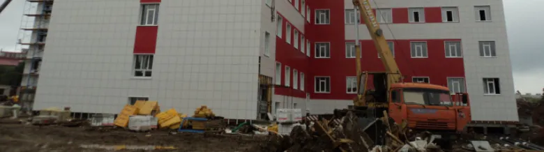 В настоящее время завершено устройство кровли двух блоков. Ведутся работы по устройству вентилируемого фасада, сантехнические, электромонтажные, штукатурные и шпаклевочные работы.Ввод объекта в эксплуатацию планируется в 2019 году.
