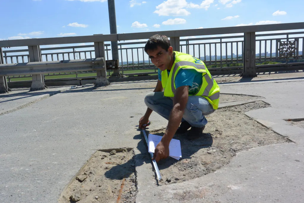 На сегодняшний день уже полностью заменены швы на правой половине моста, – рассказывает Алексей. – Начали проводить ямочный ремонт бетонного покрытия на эстакадной части. На данный момент закончили его примерно на 30%. Впереди – работы по укладке уникального тонкослойного покрытия на правой половине моста площадью около 6000 квадратных метров.