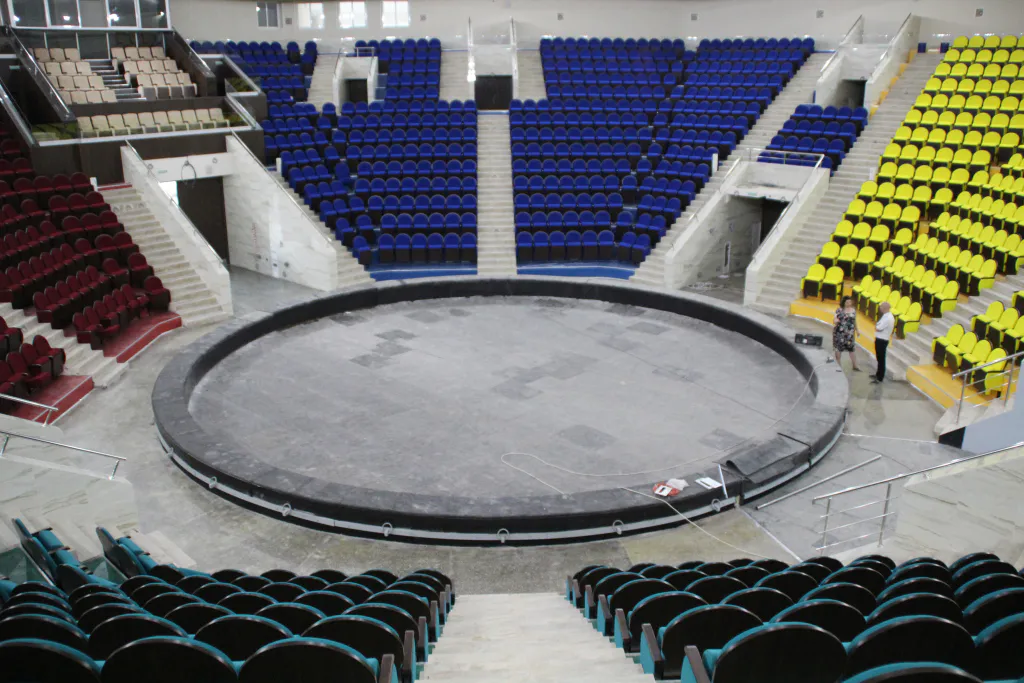 Наибольшее впечатление производит, конечно, сама цирковая арена: каждый сектр зрительных мест имеет свой цвет — зеленый, синий, красный, желтый. Кресла удобные и мягкие. В них будет комфортно провести несколько часов, наблюдая за представлением на арене. А посмотреть действительно посмотреть будет на что.