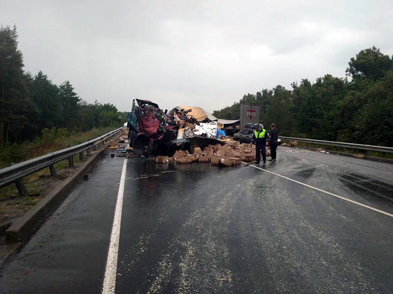 Серьезное ДТП произошло во вторник, 21 августа, около шести часов вечера, на 294-м километре трассы Москва-Челябинск в Шиловском районе - столкнулись два грузовикаПо предварительной информации УМВД, водитель грузовика «Фредлайнер» с полуприцепом допустил занос задней части машины, а также полуприцепа, в результате чего перевозимый груз - алюминиевые катушки, весом примерно 10 тонн каждая, упал на полосу. С грузом столкнулся «Камаз». По данным источника Pro Города, в результате произошедшего водитель Камаза - 57-летний Виктор Ш. - оказался зажат в кабине, и скончался на месте ДТП. Водитель "Фредлайнера" - 48-летний Игорь А. - не пострадал.