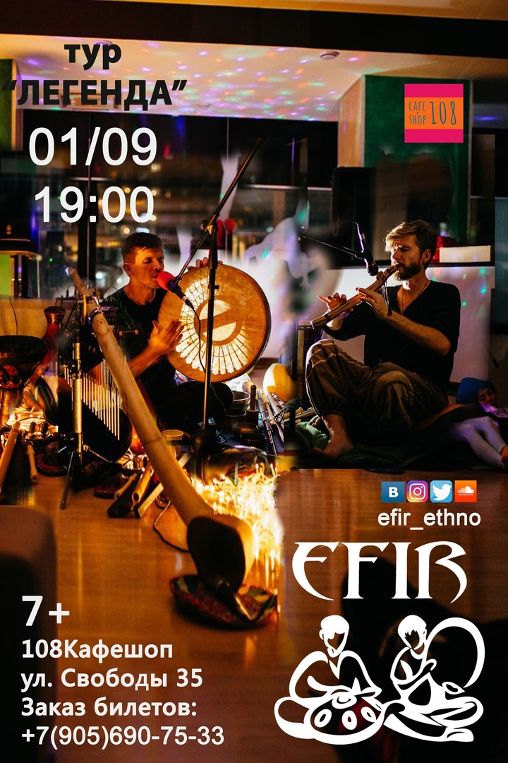 Концерты Efir - это больше чем вы можете себе вообразить! Это театр звука, калейдоскоп архаичной музыки, пробуждающей дремлющую где-то глубоко изначальную Силу.