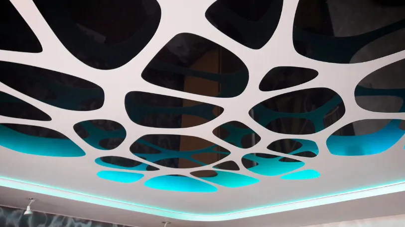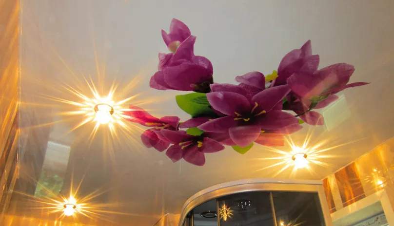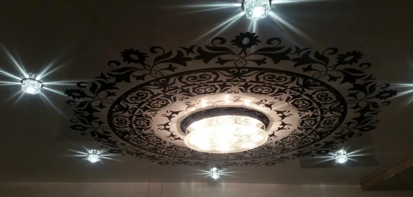 Необычные дизайнерские решения. Специалисты компании "Золотые руки" постоянно находятся в поисках новых дизайнерских и технических решений для вашего дома. Поэтому все новинки в сфере дизайна натяжных потолков можно найти именно у них.