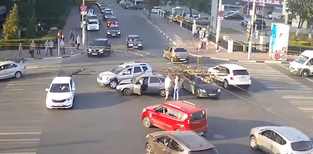 Помните, вчера на площади Ленина столкнулись Приора и Дастер? Появилось видео момента ДТП