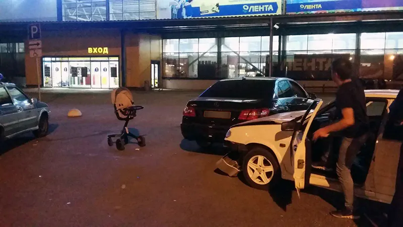 На парковке у ТЦ "Лента" пьяный водитель "четырнадцатой" сбил детскую коляску и врезался в Мерседес
