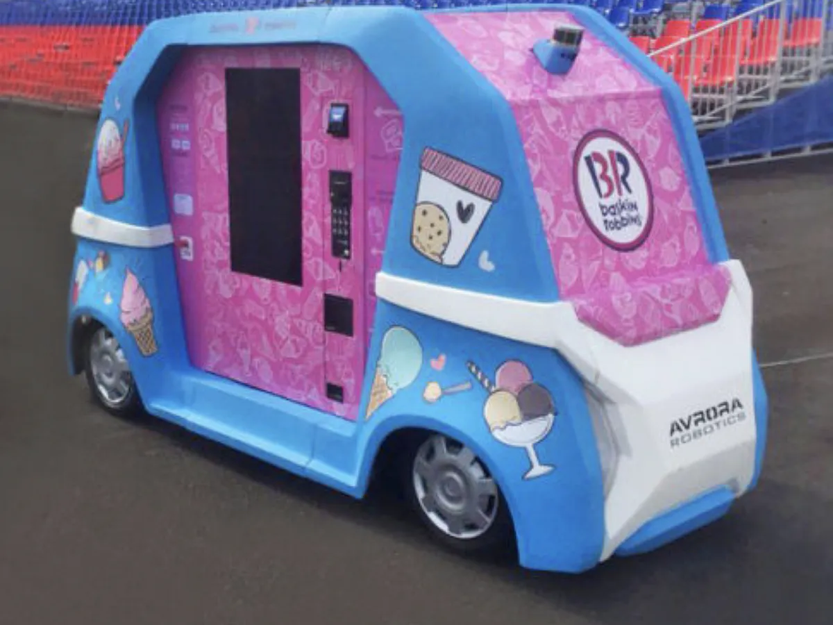 Всемирно известная сеть кафе-мороженого Баскин Роббинс презентовала прототип инновационного беспилотного аппарата по продаже мороженого ВендБот от рязанской компании Avrora Robotics. Теперь роботизированный вендинговый аппарат будет самостоятельно двигаться навстречу клиенту.