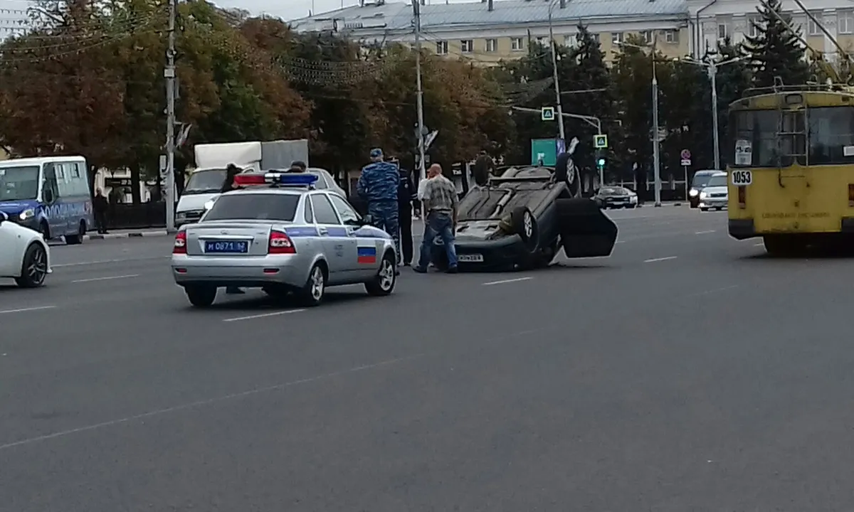 На площади Ленина перевернулся автомобиль: фото и видео