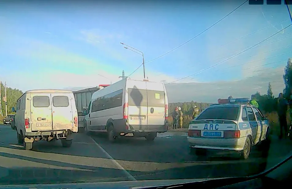 Видео. На Ряжском шоссе столкнулись грузовик и маршрутка, есть пострадавшие