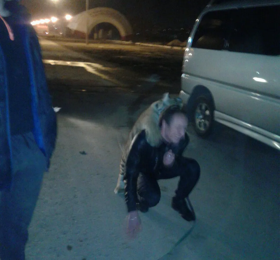 Около Ашана пьяный дрессировщик выгуливает тигренка