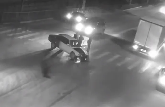 На записи видно, что в Приокском легковой автомобиль влетел в БМВ, которую везли на буксире.