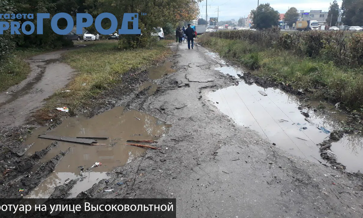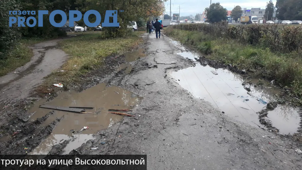 Тротуар на улице Высоковольтной напоминает место танкового сражения, - вместо уложенного асфальта под ногами рытвины, ямы и грязь. Во время дождя, тротуар обильно заливает водой. Поэтому, пройти по этой дорожке и не испачкать ботинки - практически невозможно. Также, там отсутствует какое-либо освещение. Поэтому, ночью велика вероятность упасть и сломать себе ногу.