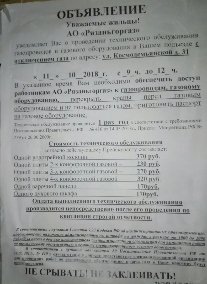 Несколько квартир в доме №31 по улице Космодемьянской остались без газа. Ситуация забавна, тем что остались они без газа по вине газоснабжающей организации, - пост об этом был опубликован в группе "Новости Рязани ВКонтакте".
