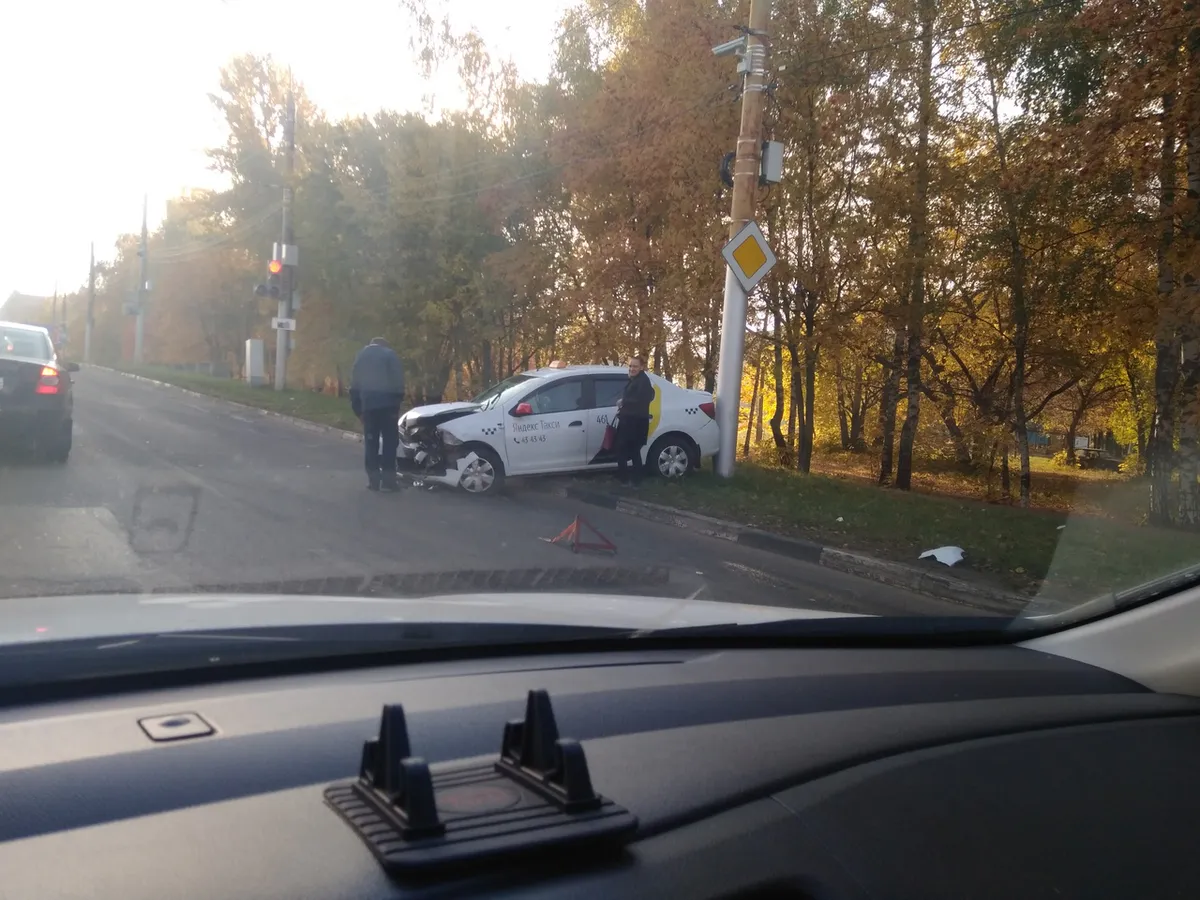 В воскресенье утром, 14 октября произошло ДТП с участием такси, - фотография с места ДТП появилась в группе "Подслушано у водителей в Рязани".