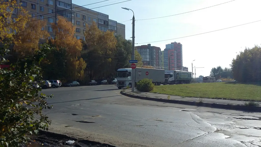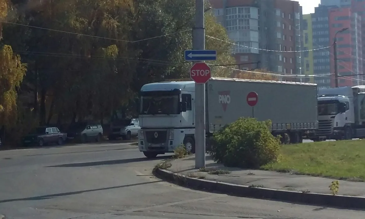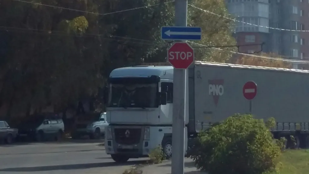 Водители Рязани пожаловались на фуры, которые паркуются после знака "STOP" и загораживают обзор