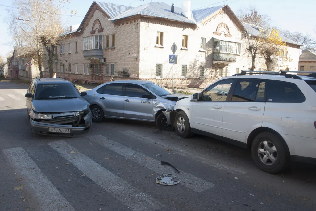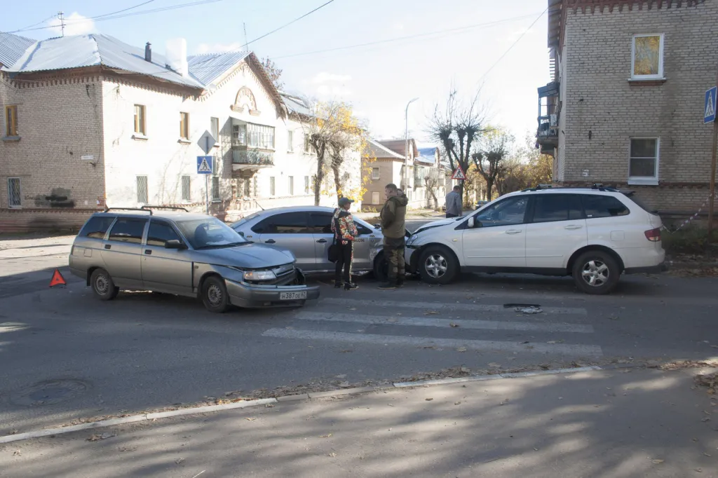 На перекрёстке улиц Гоголя и Полетаева столкнулись три автомобиля: видео момента ДТП