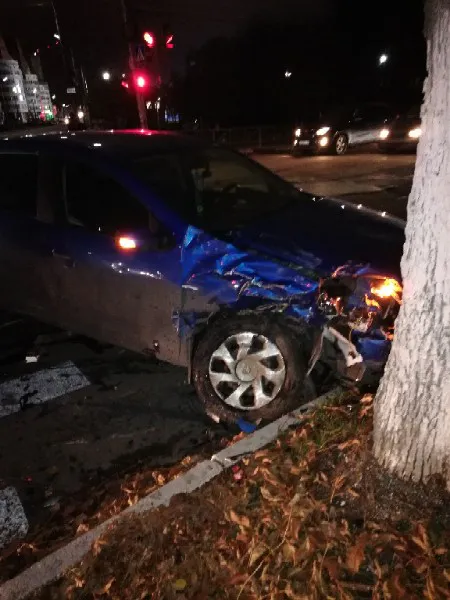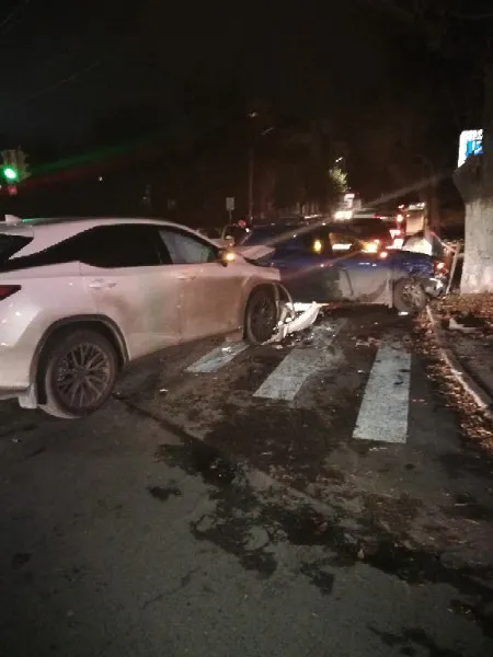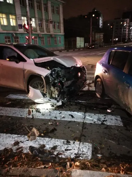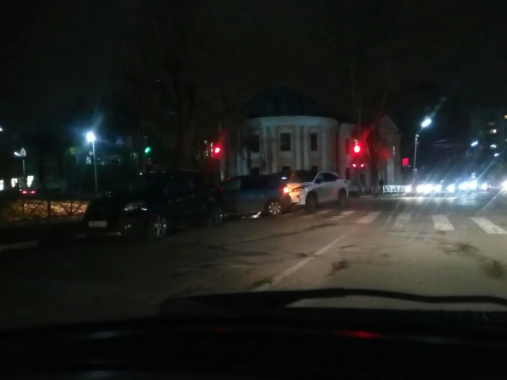 Вечером, 25 октября, на пересечении улиц Маяковская и Свободы столкнулись сразу три автомобиля, - фотографии с места ДТП появились в группе «Подслушано у водителей Рязани».