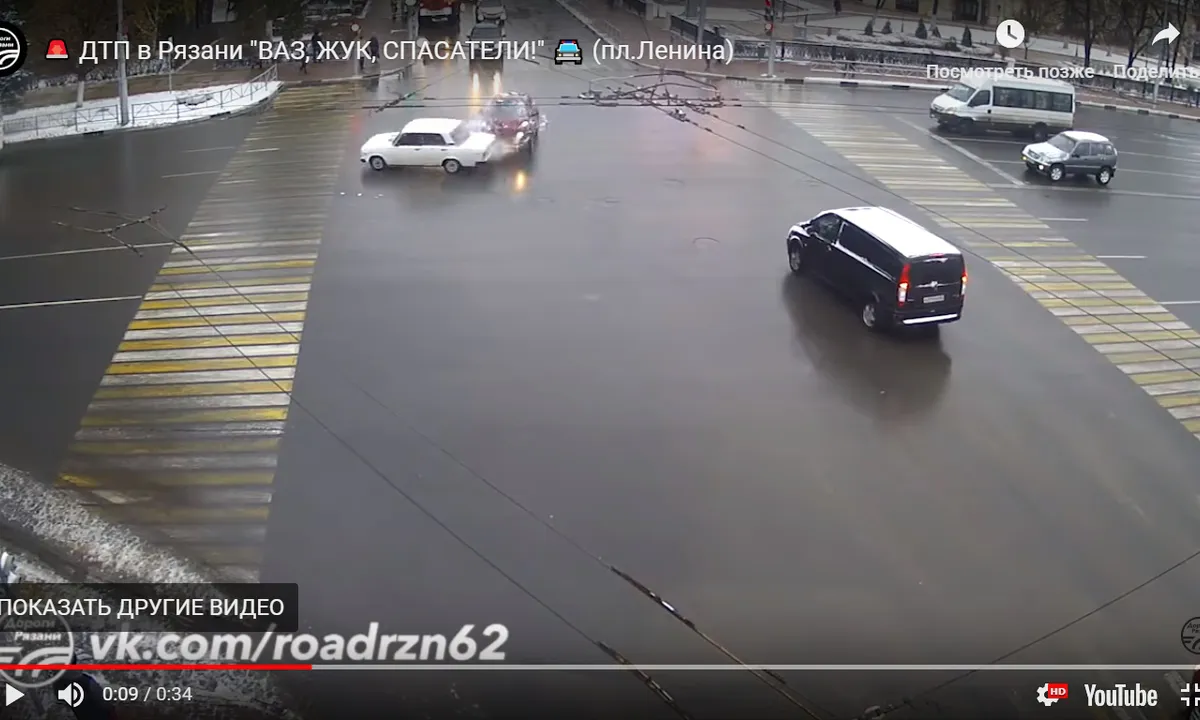 Как видно на кадрах, водитель «Жигулей» выехал на перекрёсток на красный свет, чем собственно и спровоцировал ДТП.
