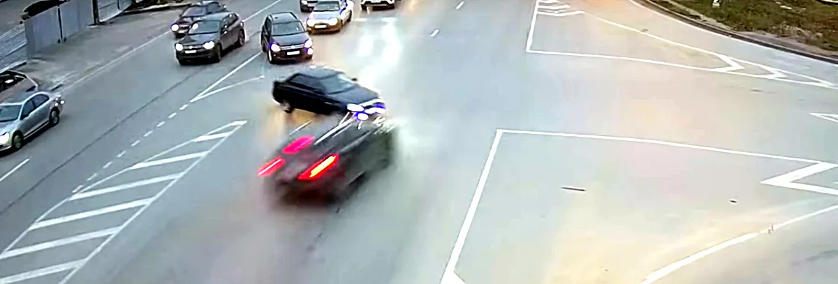 На видеоролике видно, как внедорожник на большой скорости выехал на перекрёсток на красный свет, где врезался в Приору. Официальной информации пока нет.