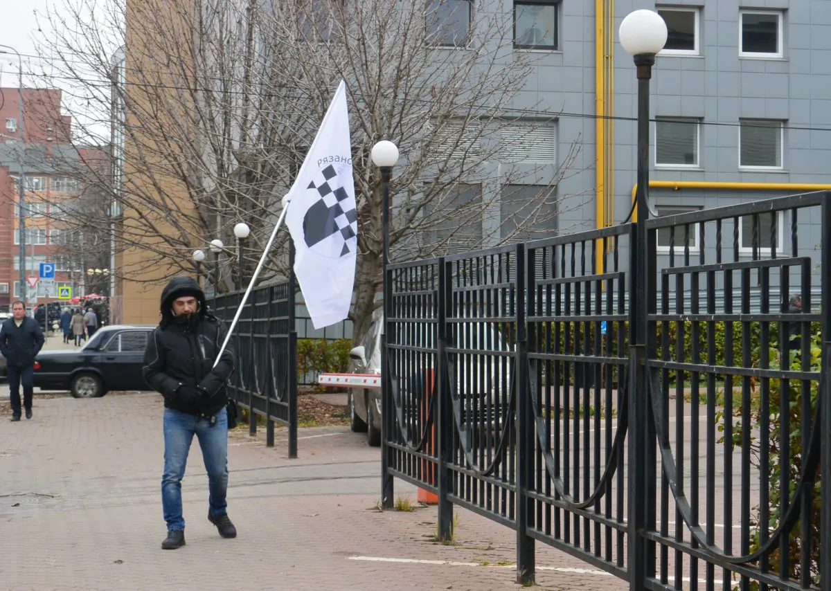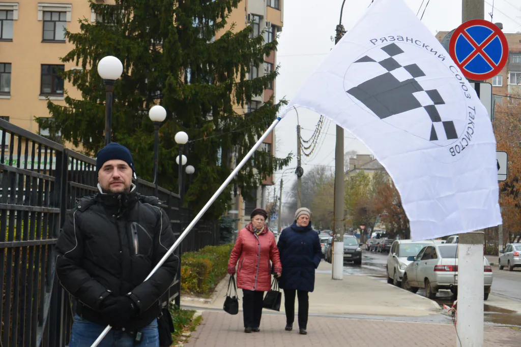 7 ноября у Минтранса Рязанской области собрались пятнадцать таксистов с единственным флагом - это был пикет.
