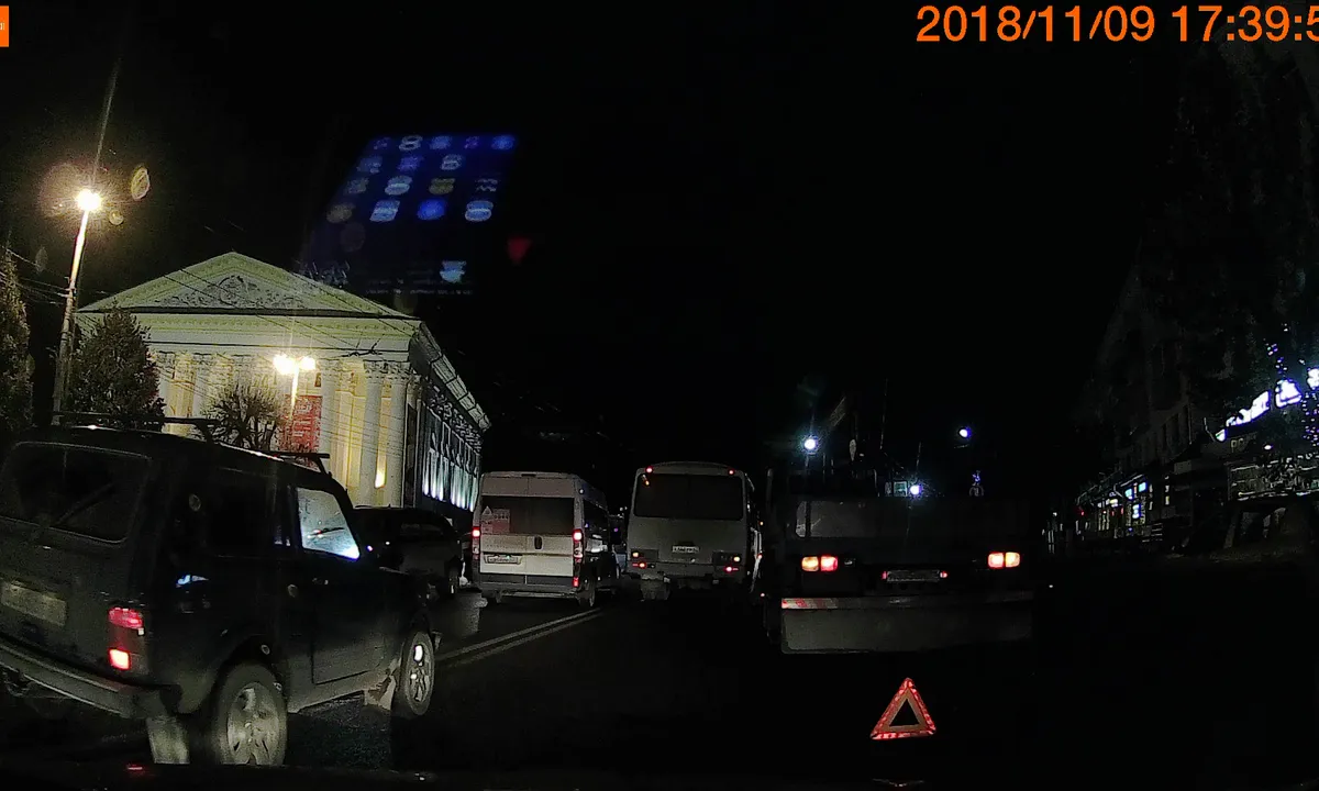 Из-за аварии на нескольких улицах образовались крупные пробки. Судя по снимку, серьёзных механических повреждений транспортные средства не получили. О пострадавших не сообщается.