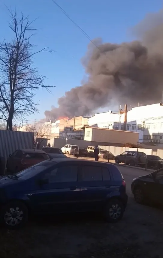 На Южном промузле горит строение 6/5. Предварительная площадь возгорания составляла 300 квадратных метров, сейчас дают 1500-2000 квадратных метров. Загорелся цех завода по розливу жидкости для розжига. По предварительной информации, огонь появился на открытой площадке, где находились ёмкости с огнеопасной жидкостью, а потом уже перекинулся на цех.