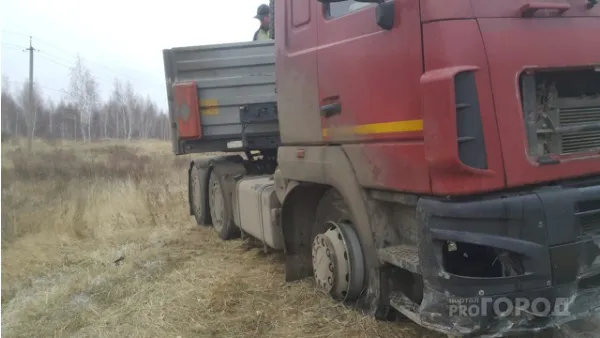 По словам водителя, причиной аварии стал гололед. КАМАЗ начал притормаживать перед затяжным поворотом, но машину занесло, и полуприцеп раскрылся.