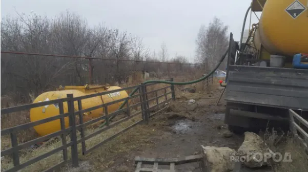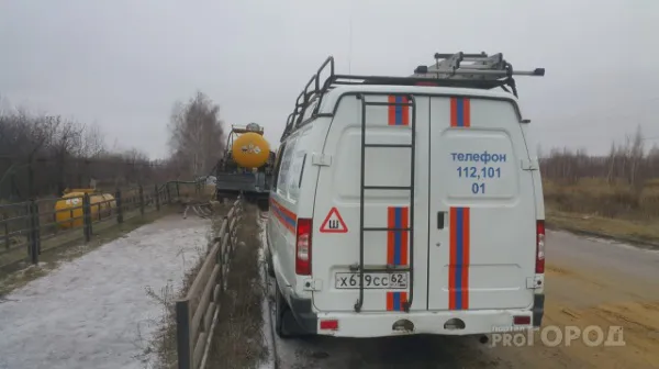 К аварийной цистерне пригнали новую бочку, и в нее перекачали остатки серной кислоты.