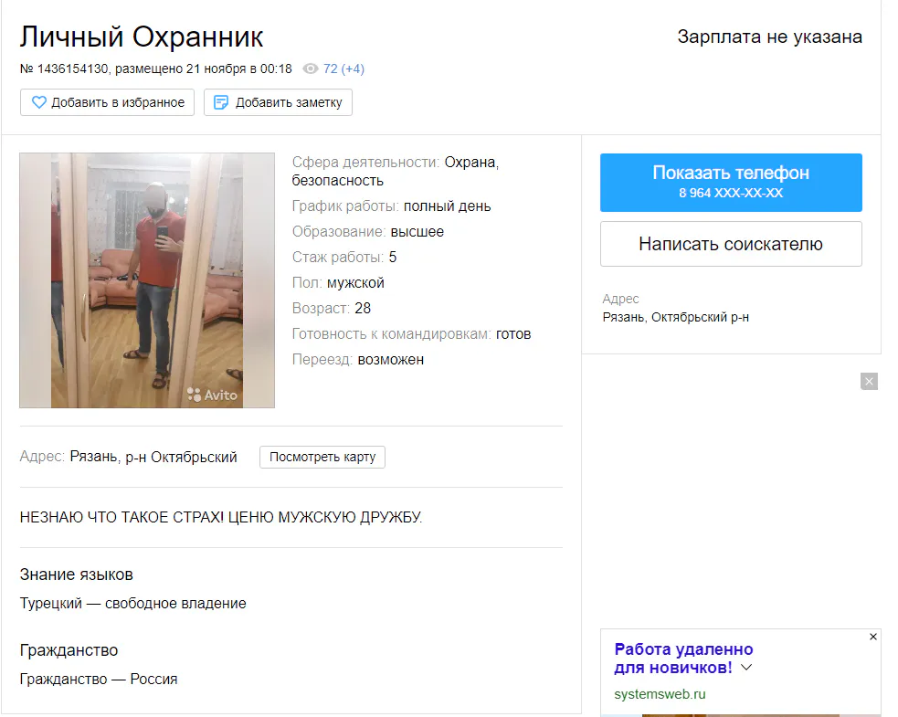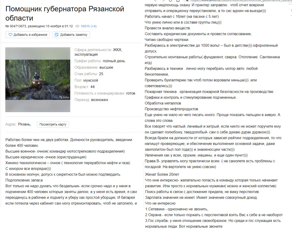 На рязанском "Авито" ищут работу подчас странные люди. Мы сделали подборку.