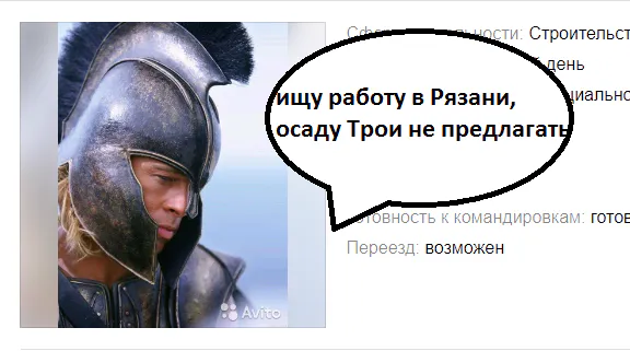 Что-то у стен Трои пошло не так, и Ахилл ушел в строительство. Видимо, тот факт, что русский - не родной язык греческого героя, сыграл роль при написании этого объявления. Нам же оно напомнило один известный в интернете мем с афроамериканцем, который вечно что-то хочет.