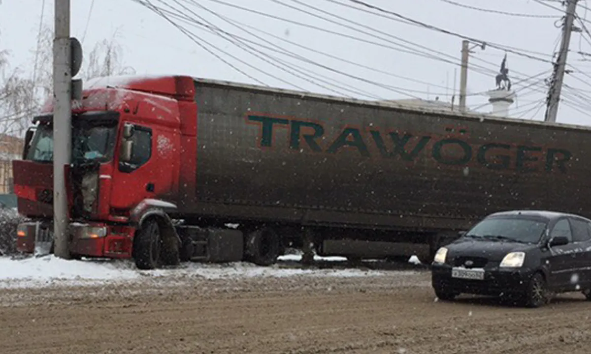 На Московском шоссе водитель фуры не справился с управлением и врезался в столб: подробности ДТП