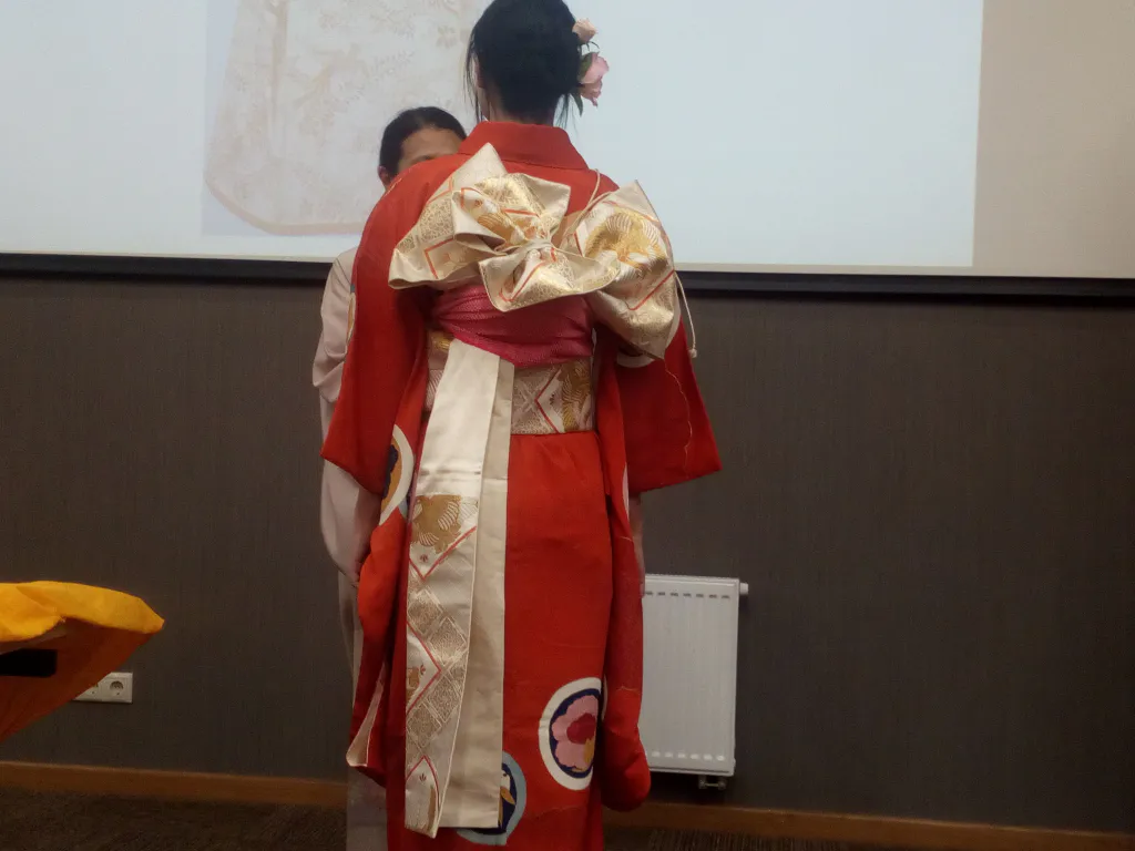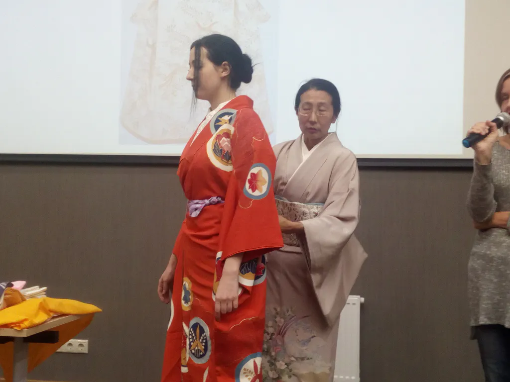 В первый день мастер-классов японцы показали, как надевается кимоно, и рассказали о его видах и пошиве. Мы сделали небольшой фоторепортаж.