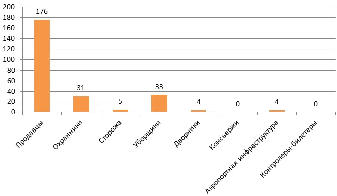 Как выяснилось, спрос в Рязанской области на продавцов самый высокий, мы нашли 176 вакансий. В уборщиках и охранниках нуждаются гораздо меньше - 33 и 31 вакансия соответственно. По минимуму нужны сторожа (5 вакансий) и дворники (4 вакансии). Как оказалось, в Рязани ищут людей на работу в инфраструктуру аэропортов - мы нашли целых 4 вакансии, все связаны либо с готовкой, либо с погрузками. Но работа вахтами.