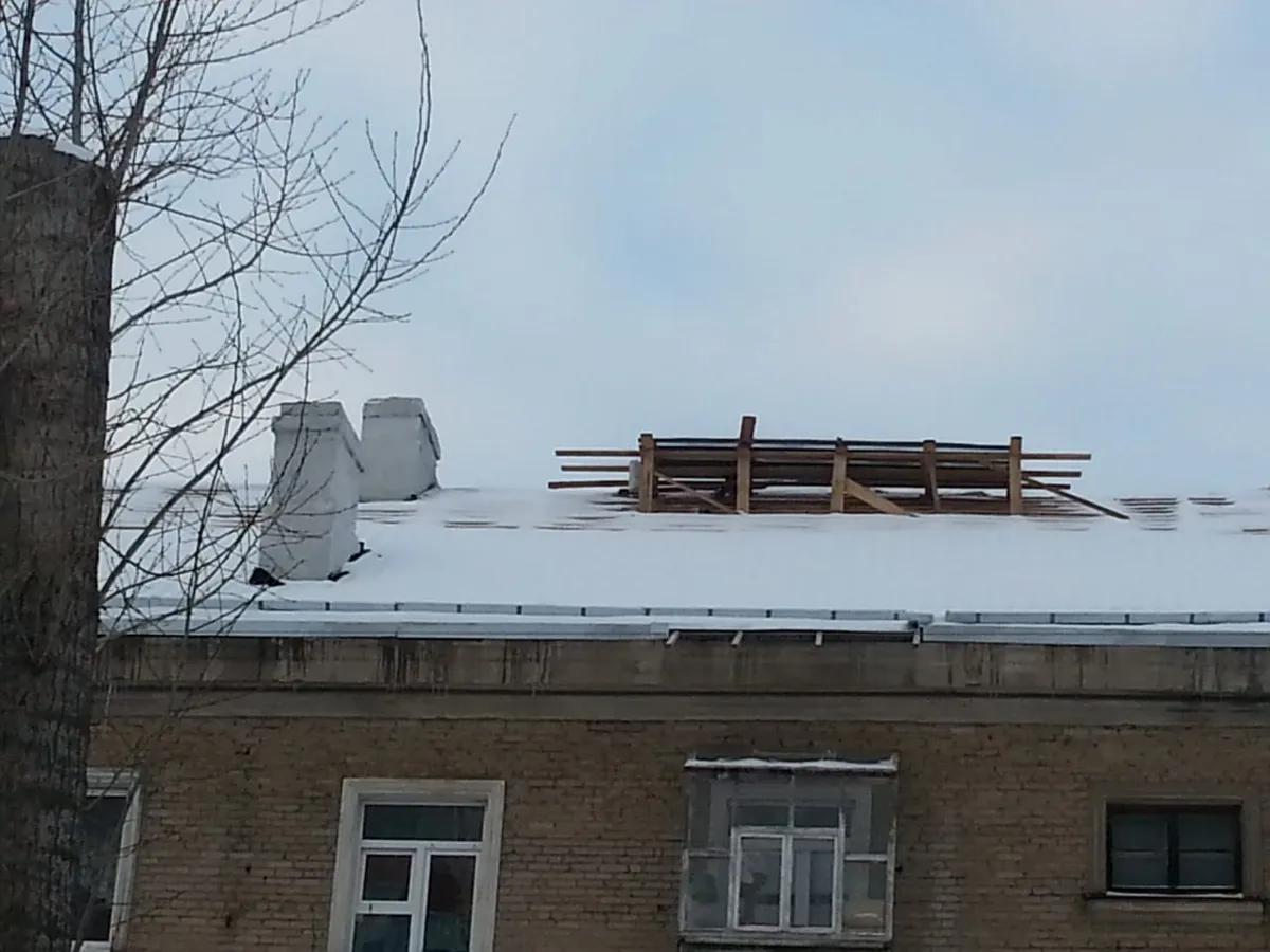 Вчера в группе "Рязань" появилось сообщение от жителя города. Выяснилось, что в нескольких домах до сих пор наполовину разобраны крыши, рабочих и след простыл, а деревянные доски уже покрыты снегом.