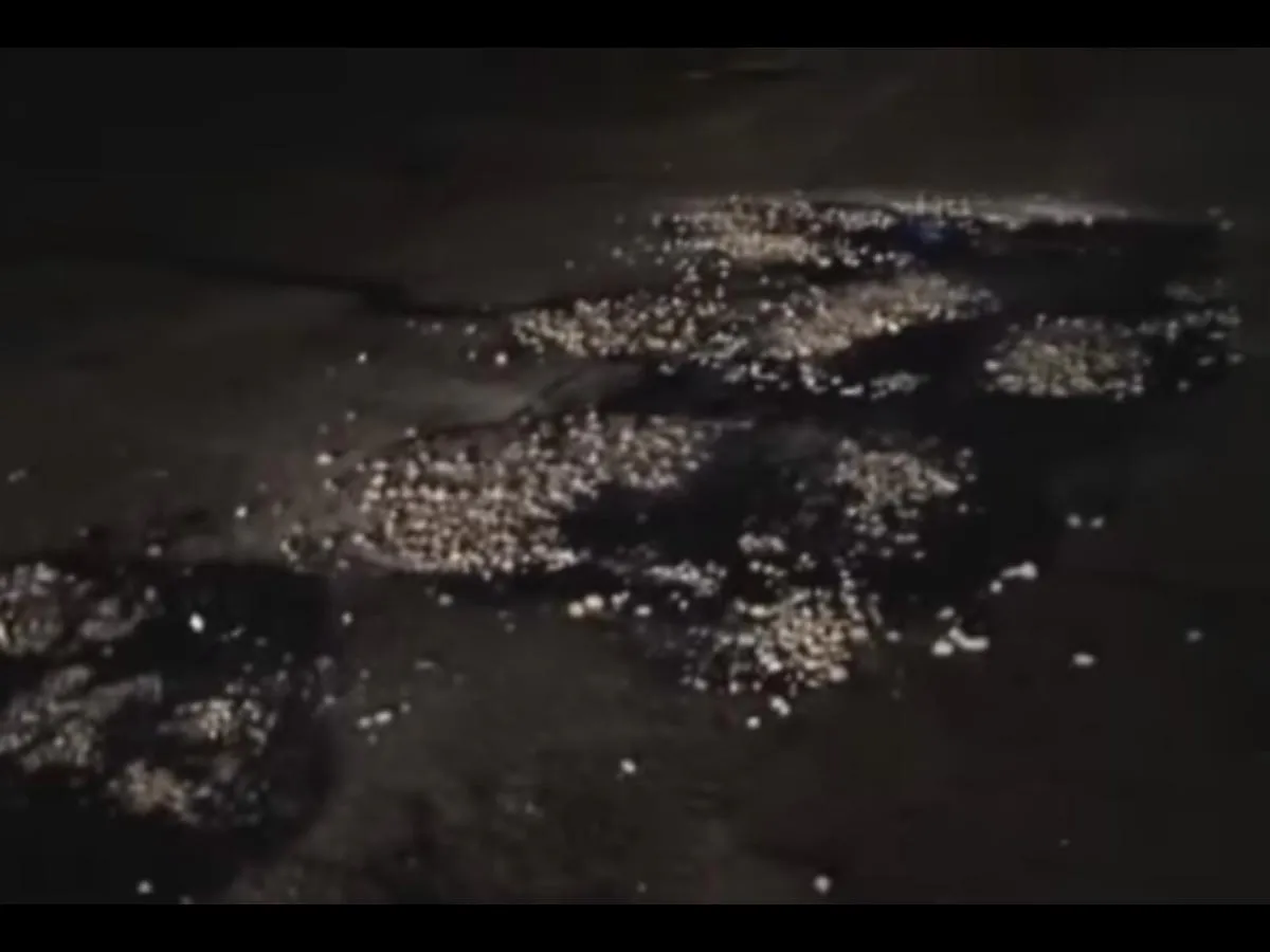 Видео снято на проезде Речников, где проходил ямочный ремонт в ночное время суток. Без сомнения можно сказать, что поврежденные участки дороги не так давно заделаны, об этом говорит дымка исходящая от асфальта.