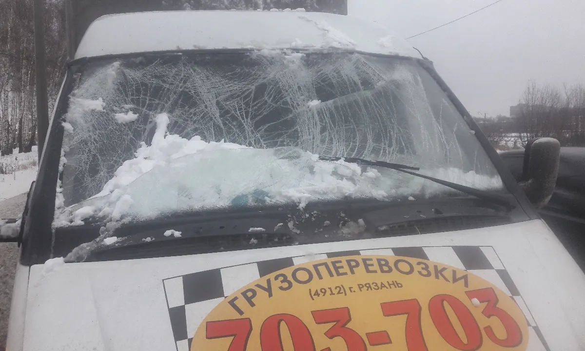 На Южной окружной упавший снежный ком пробил лобовое стекло грузовой «Газели»