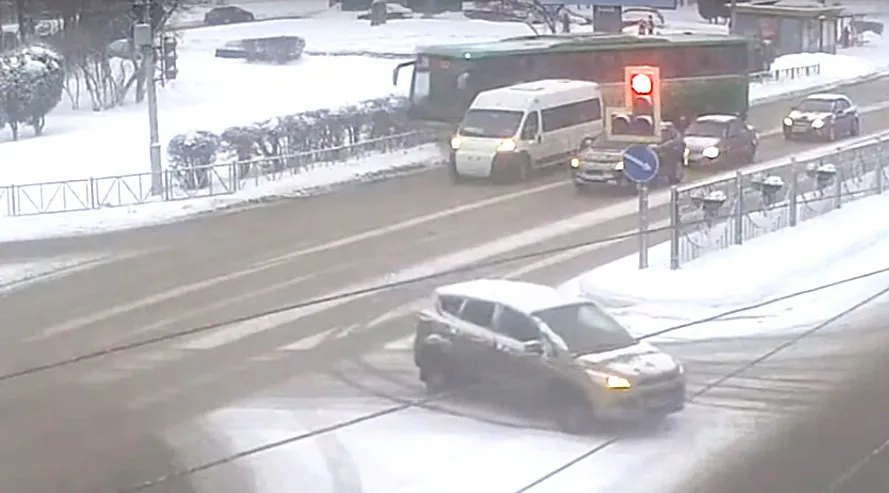 Вероятно, инцидент произошёл 14 декабря. На кадрах видно, как водитель междугороднего автобуса чтобы не допустить столкновения со стоящей впереди маршруткой, съехал в обочину и снёс разделительное ограждение.