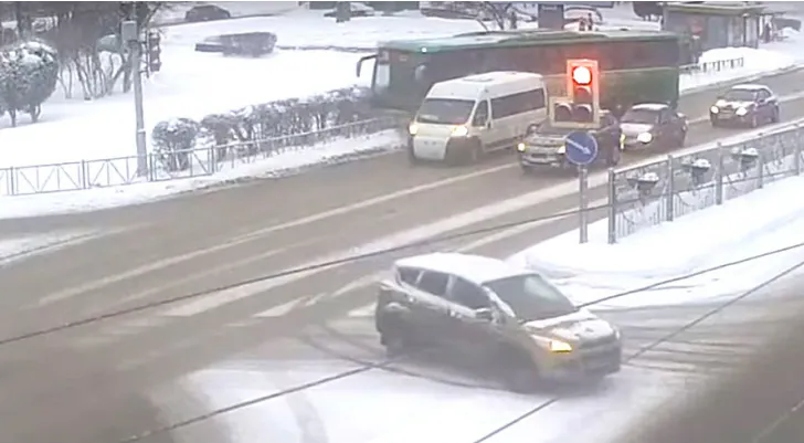 На Московском шоссе междугородний автобус едва не разнес маршрутку