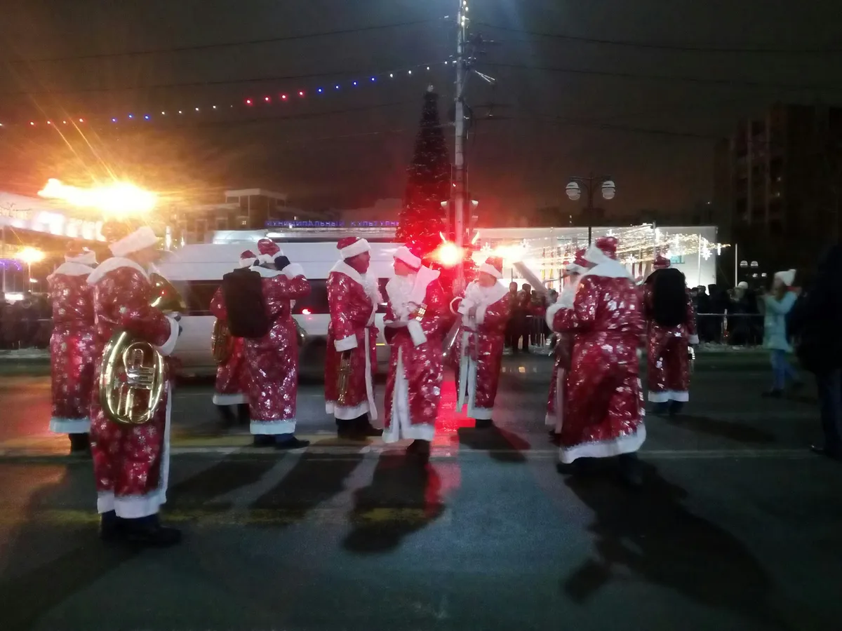 По улице прошелся оркестр из Дедов Морозов, а еще проехался белый "кадиллак" - в нем находилось несколько Снегурочек. В этом году гостями парада стали десантники - в честь 100-летия училища ВДВ. Хоть вечер и выдался морозным, рязанцев это не остановило - парад посетило большое количество людей. Сразу с несколькими Дедами Морозами могли сегодня сфотографироваться и юные рязанцы - множество жителей города привели с собой детей.