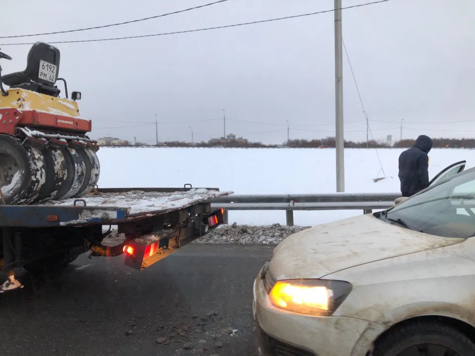 Курьез дня: в Рязани Фольксваген врезался в эвакуатор, который вез каток