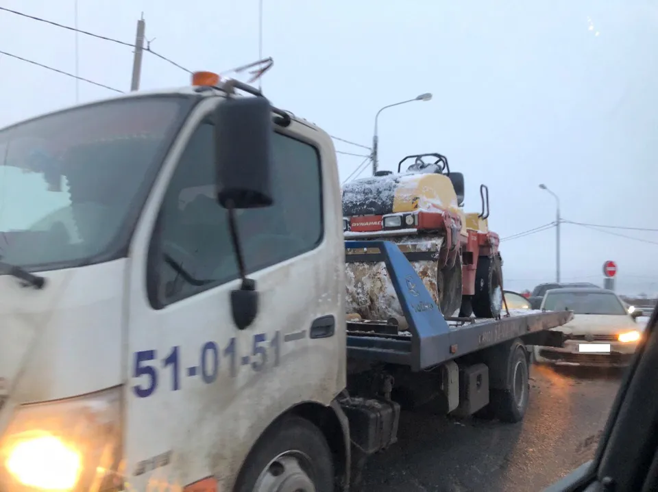 Курьез дня: в Рязани Фольксваген врезался в эвакуатор, который вез каток