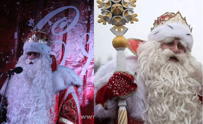 Не считая того, что костюмы у Дедов Морозов разные, отличие - в бороде (у "финского" волшебника она выглядит понатуральнее). И рязанский Дед Мороз кажется более суровым. Возможно, он просто устал после быстрой поездки из Финляндии в Рязань.