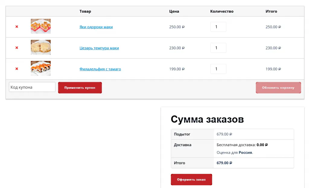 Заказ был сделан через сайт роллтайм.рф. Сайт прост, удобен и информативен. На нем можно не только посмотреть стоимость и как внешний вид блюда, но и узнать его состав и граммовку. По итогу заказ был сформирован из трех позиций.