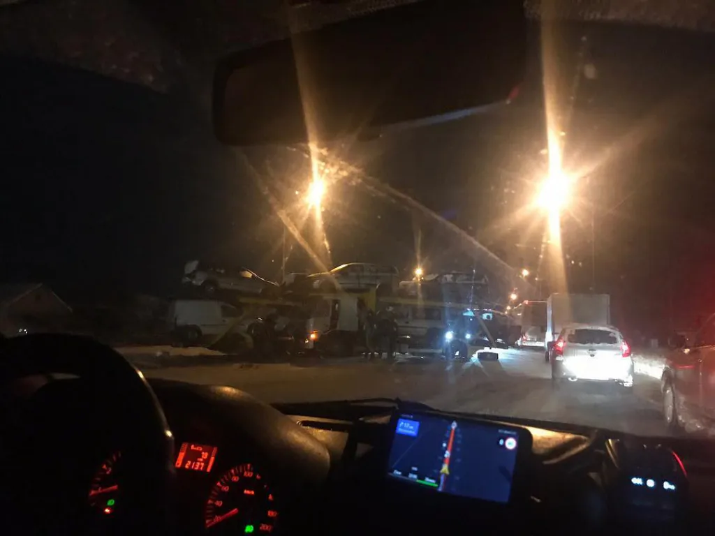 В воскресенье ночью на трассе М5 «Урал» развернуло автовоз