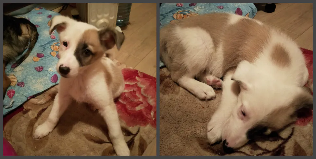Этот маленький щенок Адель. Её взяли в дом, но она не прижилась с кошками (по словам ее бывшего хозяина). Вместо того, чтобы найти ей новый дом, Адель просто выкинули на улицу. Щенка возил водитель в маршрутке, чтобы она не замёрзла. Так она попала в приют. Девочка пережила предательство, страх.