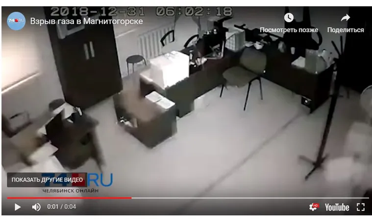 31.12.2018 в 14:08Скрин видео "Взрыв газа в Магнитогорске"