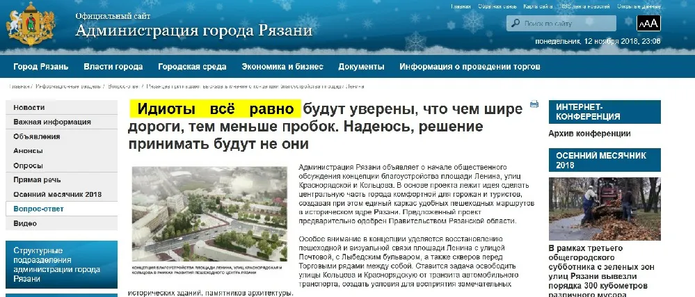 Администрация города Рязани подчеркнула, что никакой хакерской атаки на их сайт не было. Пресс-служба мэрии оправдала появление оскорбительных заголовков на сайте "техническим сбоем", сообщает YA62: