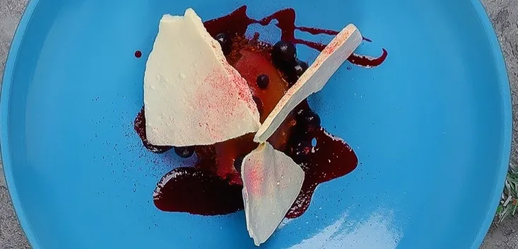 Любите сладкое? Побалуйте себя. Настало время для десерта - переходим к основному меню. Ганаш из темного шоколада с чёрной смородиной и бородинской крошкой, украшенный воздушным безе. Сладости бесценны=)