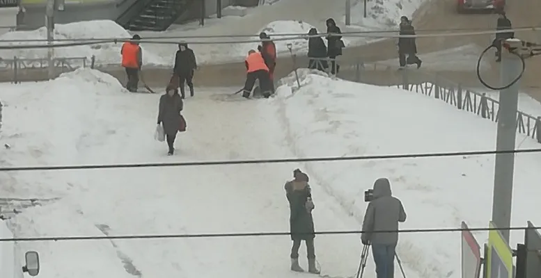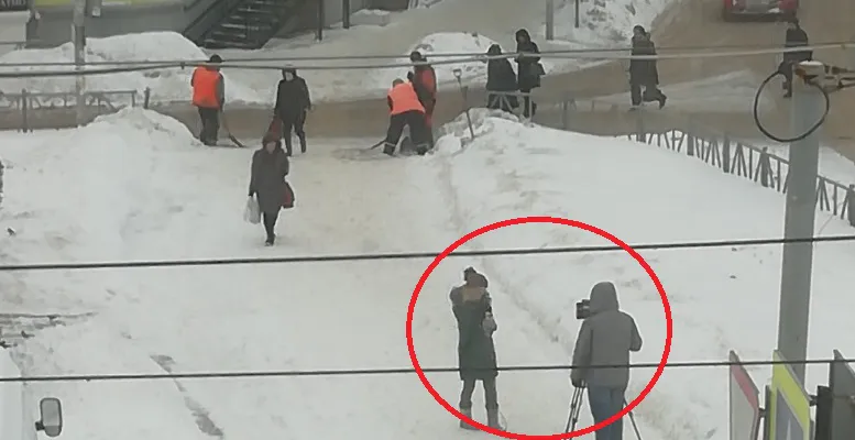 А вот крупной рязанской группе ВК "Подслушано в Рязани" появилась любопытная фотография: трое работников чистят один пешеходный переход, пока их снимают на камеру. Похоже на съемочную группу телеканала, конечно. Но пользователи предположили, что это очередная попытка "поставить галочку" и продемонстрировать активную работу:
